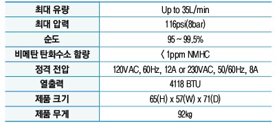 (주)구정이엔티에서 제공한 Peak Scientific의 'LC-MS 고순도 질소 제너레이터' 자료의 제품 특징, 제품 사양은 다음과 같다.