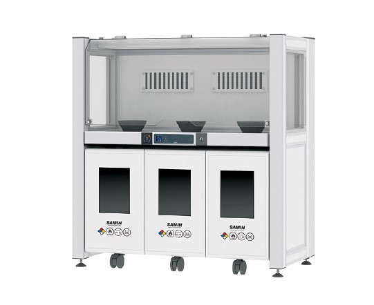 실험실이나 연구실에서 사용하는 안전장비로 각종 시약 보관 중 발생하는 유해가스 및 악취를 다단계 필터로 필터링하여 신속하게 정화, 순환시켜주는 약품 보관 안전장비이다.
