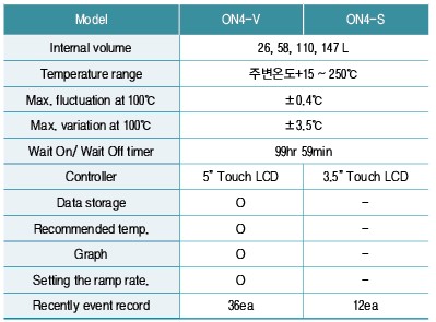 (주)제이오텍의 자연 순환 건조기 ON4 시리즈는 측면에 타공된 Multi-path를 통해 열을 대류하는 방식으로 열전달이 균일하고 안정적인 온도 분포로 실험 데이터의 신뢰성을 높인다. 컨트롤러 크기와 기능에 따라 고급형 모델과 기본형 모델로 구분되며, 2단 적재가 가능해 공간 활용성이 뛰어난 제품이다.