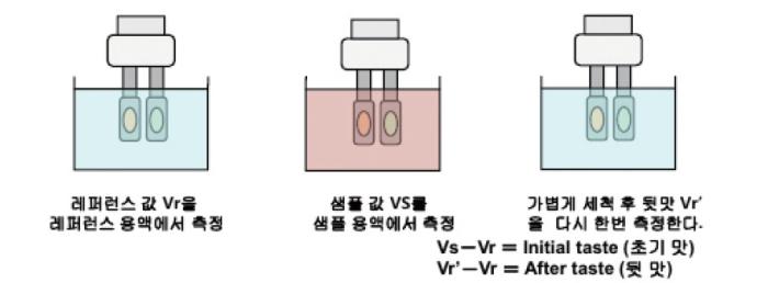 [그림 2]. 맛의 첫맛과 뒷맛 측정 방법