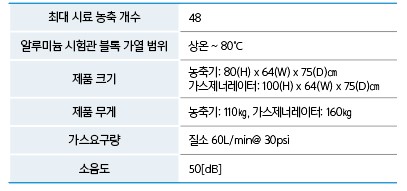 (주)구정이엔티에서 제공한 '자동 통합 시료 농축 시스템' 자료의 제품 특징, 제품 사양은 다음과 같다.