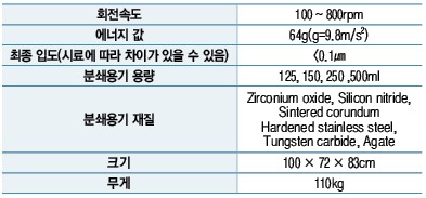 •대용량의 시료를 최소의 오염으로, 최단 시간에 최소의 사이즈로 분쇄 가능(<0.1㎛).