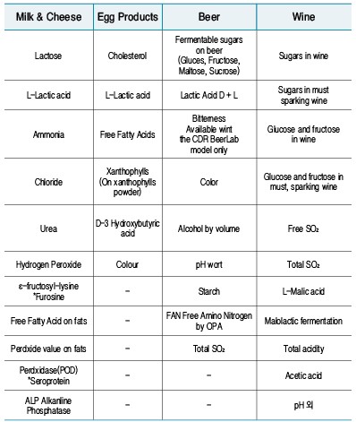 •응용 분야: 우유, 유제품, 제빵, Puree, Wine, Beer&Water, 콤부차, 커피, Oil&Fats 내 성분 신속 분석기.