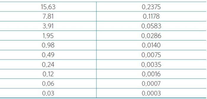 이 용액을 단계적으로 희석하여 265, 250, 125, 62.5, 31.25, 15.63, 7.81, 3.91, 1.95, 0.98, 0.49, 0.24, 0.12, 0.06, 0.03 mg/L의 농도를 갖는 시료 용액을 준비하였다.