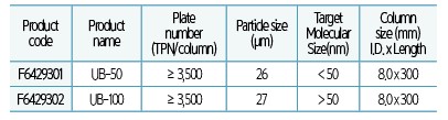 - 균일한 입자로 낮은 배압을 가지면서 높은 분리능을 실현