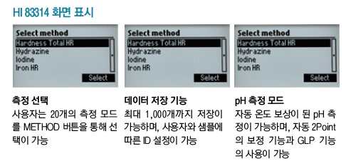 •HI 83314 기기는 pH/온도 전극을 넣을 수 있어, 탁상형 pH 측정기로서의 사용이 가능하다.