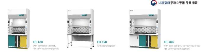 - Fire safety cabinet: 흄 후드 하부에 인화성 물질 보관 시, 내화 성능 (EN 14470-1) 인증 제품 사용 권장.