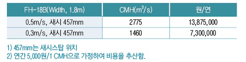 •0.3m/s의 면풍속으로 작동 시에도 ASHRAE 110 및 SEFA 1-2010의 추적자 가스 0.05ppm 이하 성능 기준을 충족하여 0.5 m/s 작동 시와 비교하여 약 47%의 에너지 절감 효과.