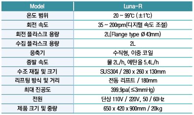 Luna-R 은 실험실 전처리 장비 전문기업 (주)구정이엔티의 회전 증발 농축기이다.
