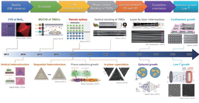 [그림 2]. 이차원 반도체 합성 기술의 발전 동향(서울대학교 재료공학부 이관형 교수 제공)