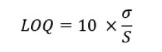 정량한계(Limit of Quantitation, LOQ)는 ICH Q2 (R1) 가이드라인에 따라 블랭크(증류수)를 10회 반복 측정하여 얻은 표준편차(σ)와 검량선의 기울기(S)를 이용해 계산하였다. 해당 관계식은 다음과 같다.